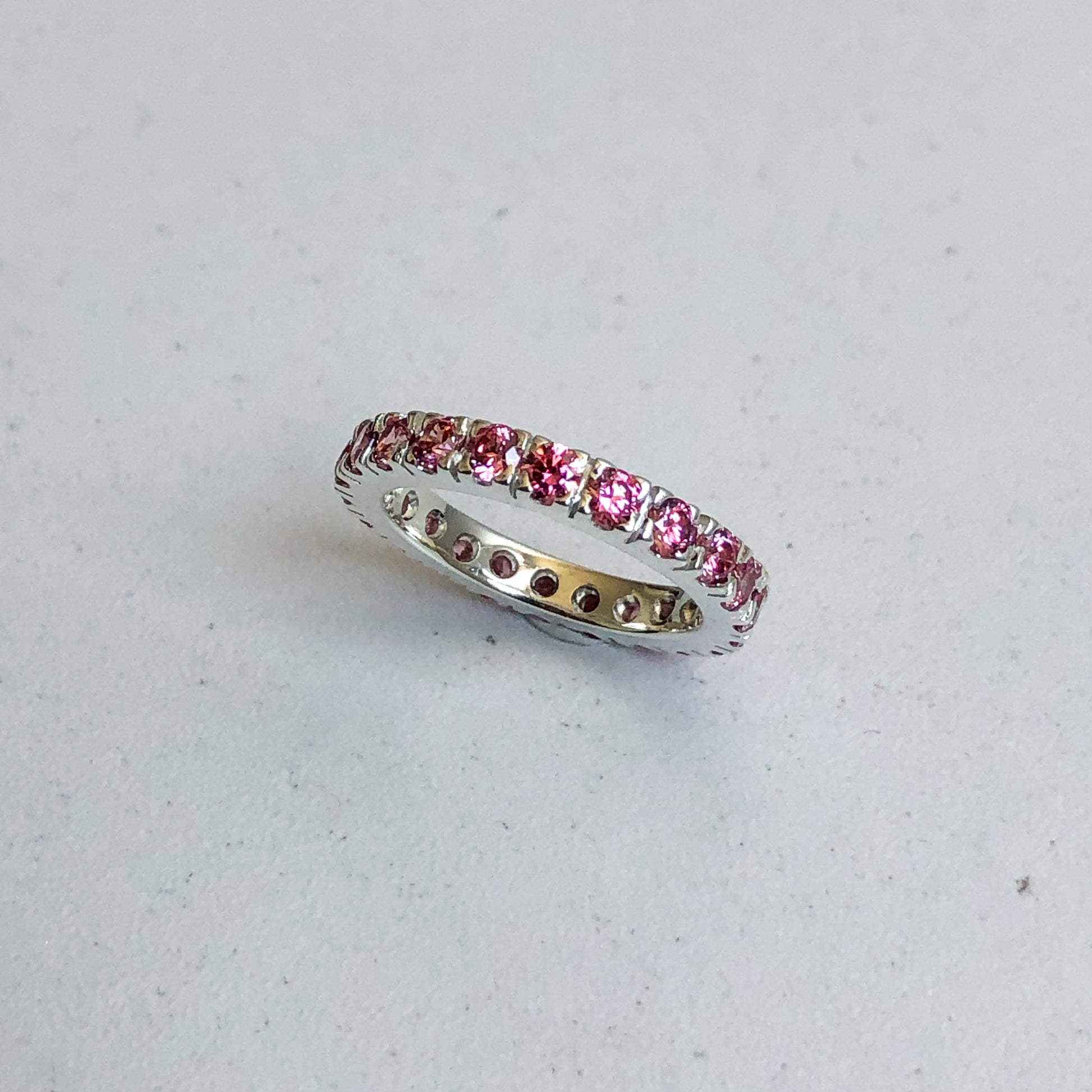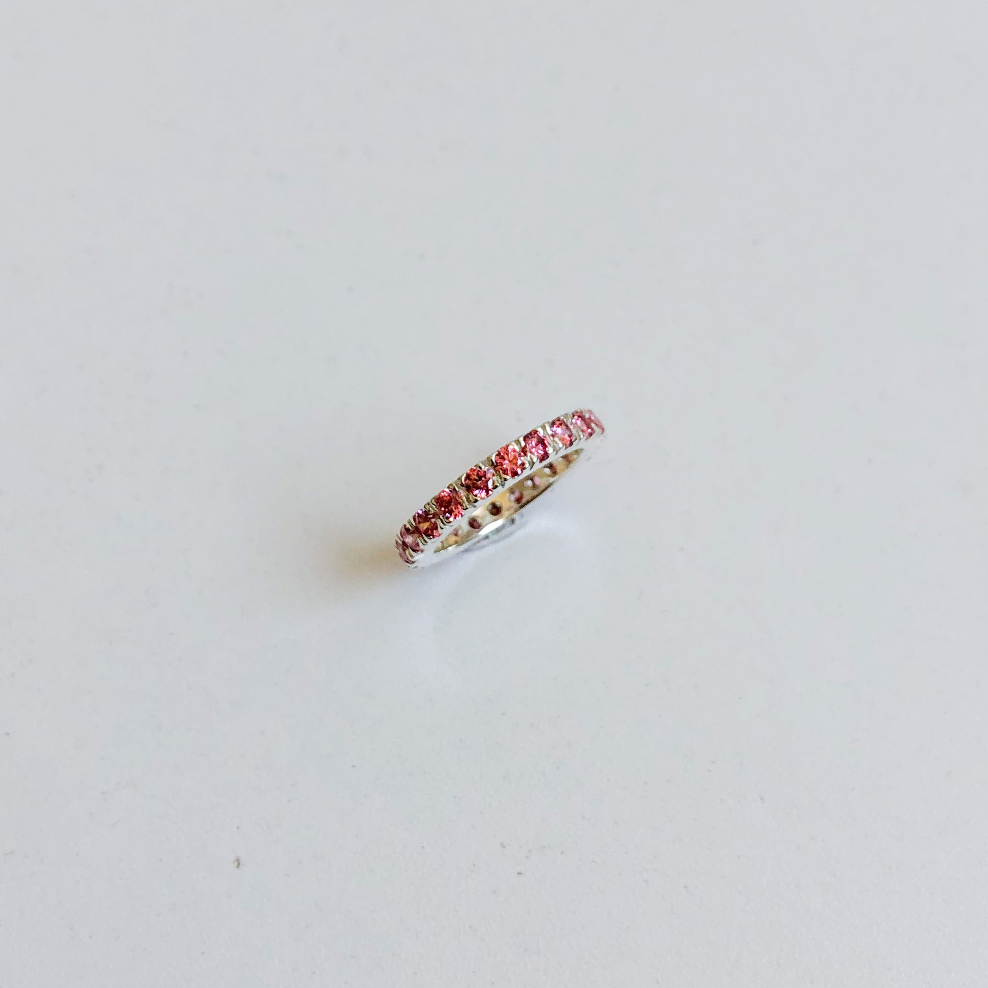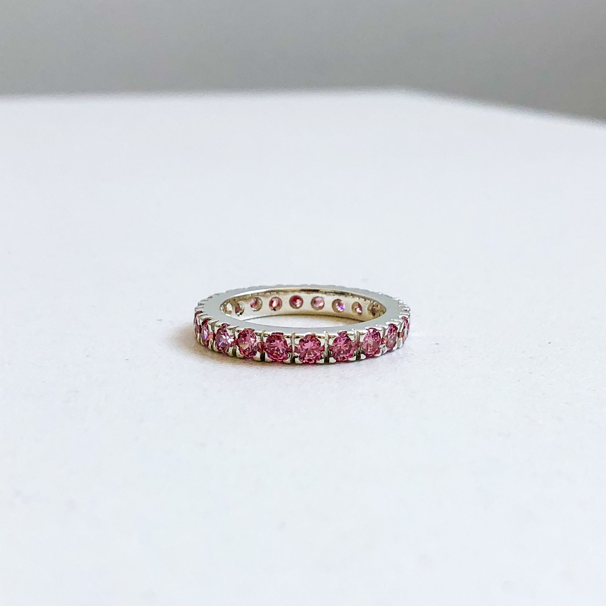 Anillo cintillo completo con Cristales Swarovski rosados ​​de 3 mm. engaste con granos.