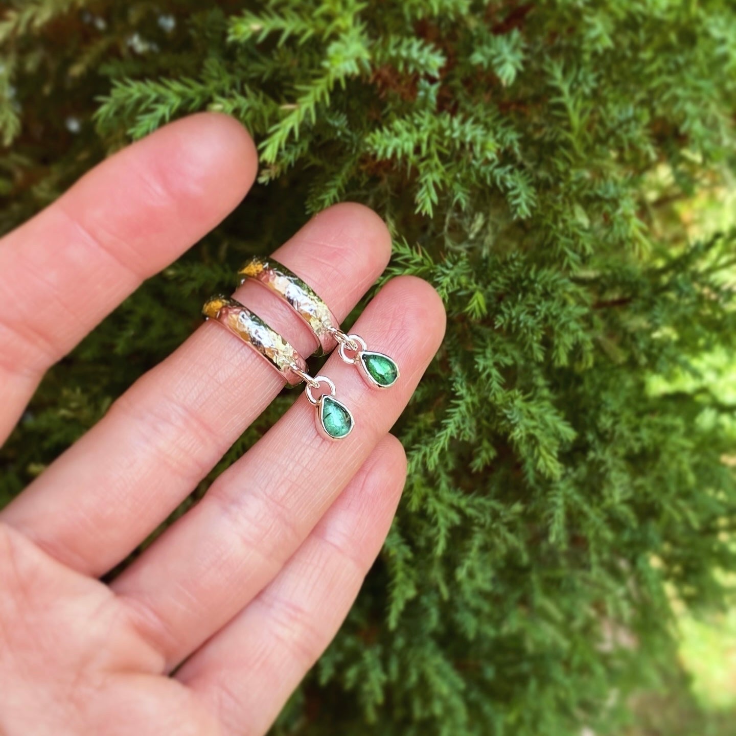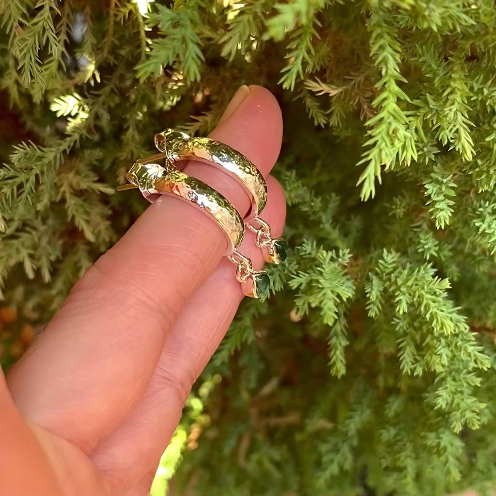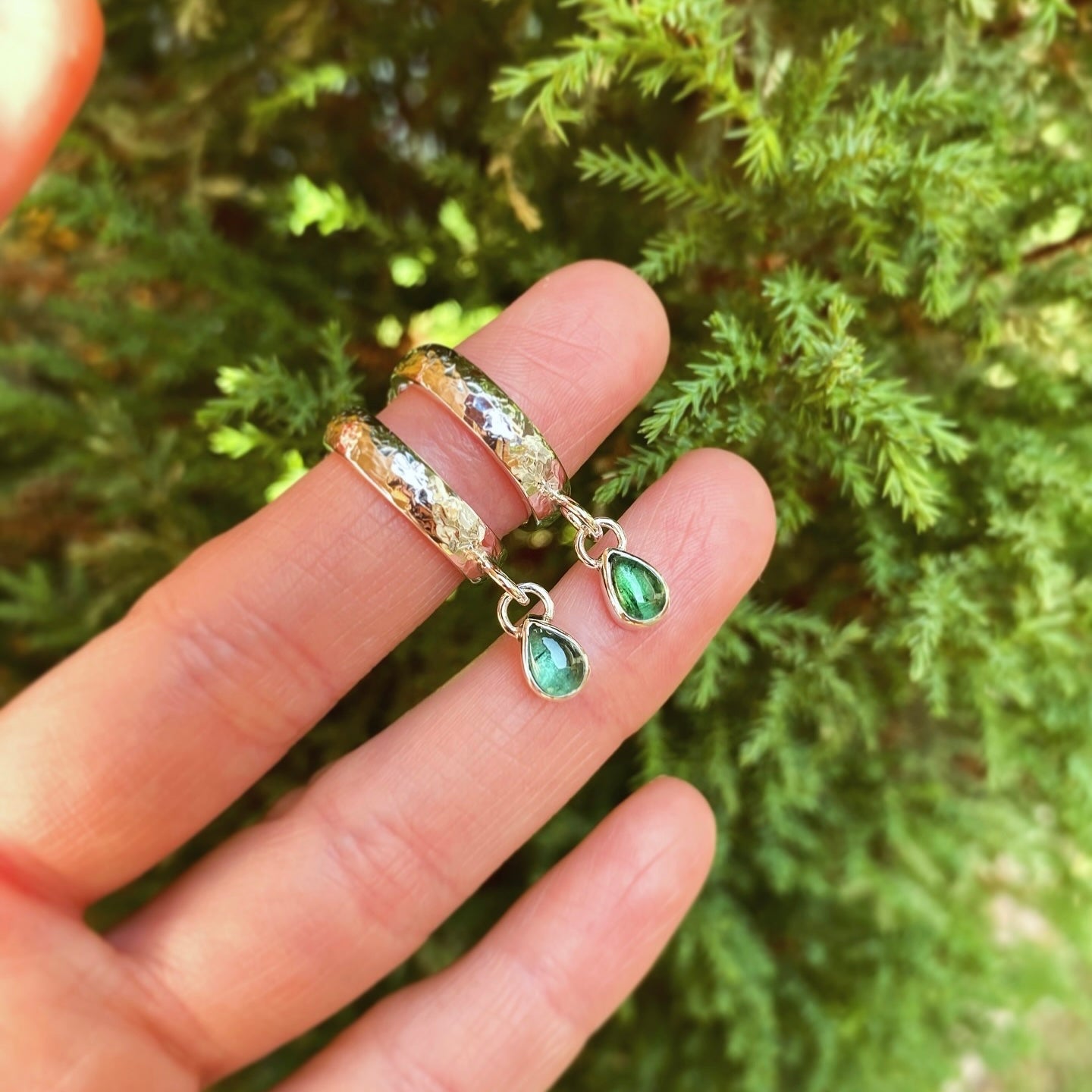 Par de aros móviles con turmalina verde cabuchón en corte pear.