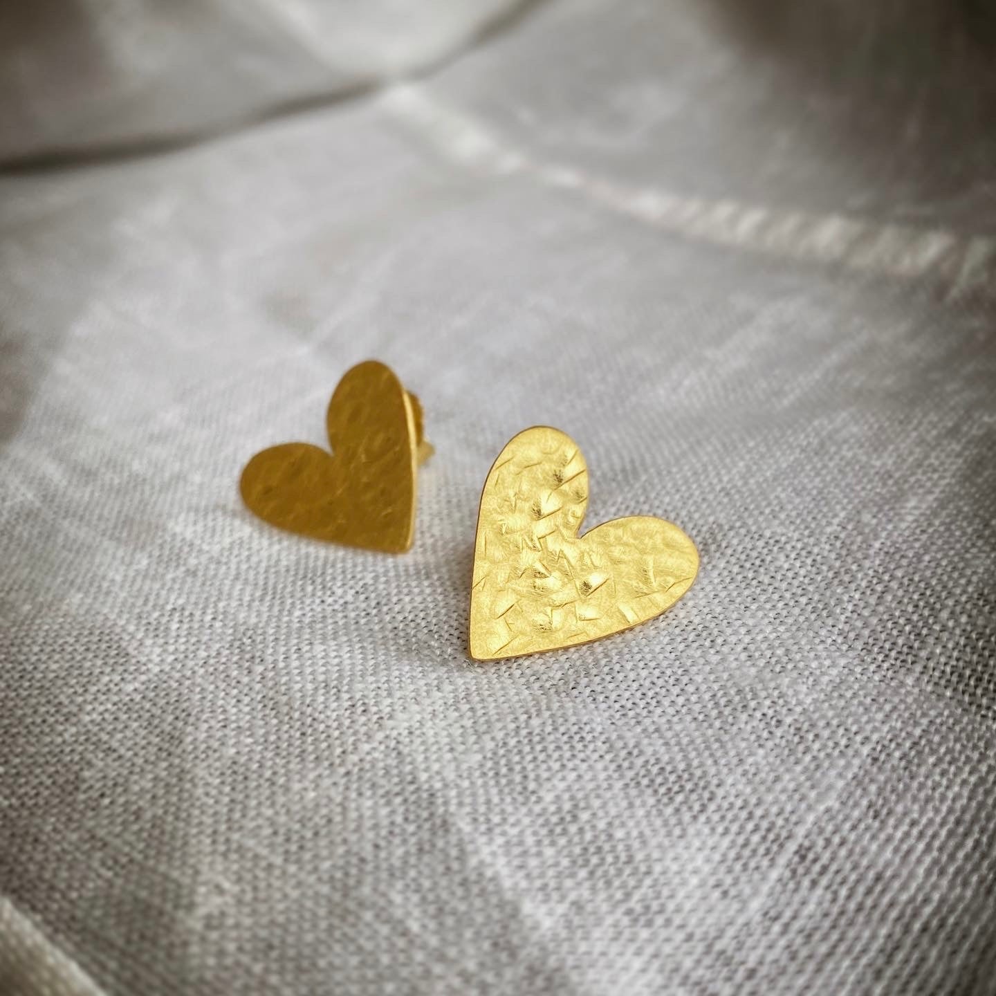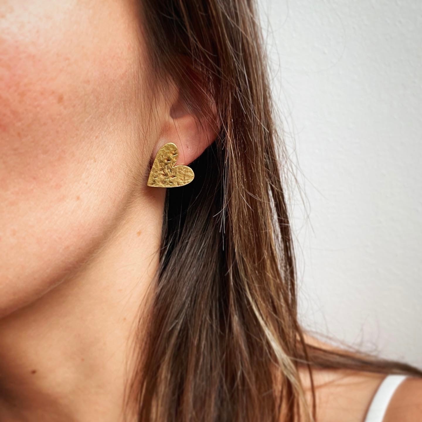 Par de aros de corazón con acabado rústico mate.