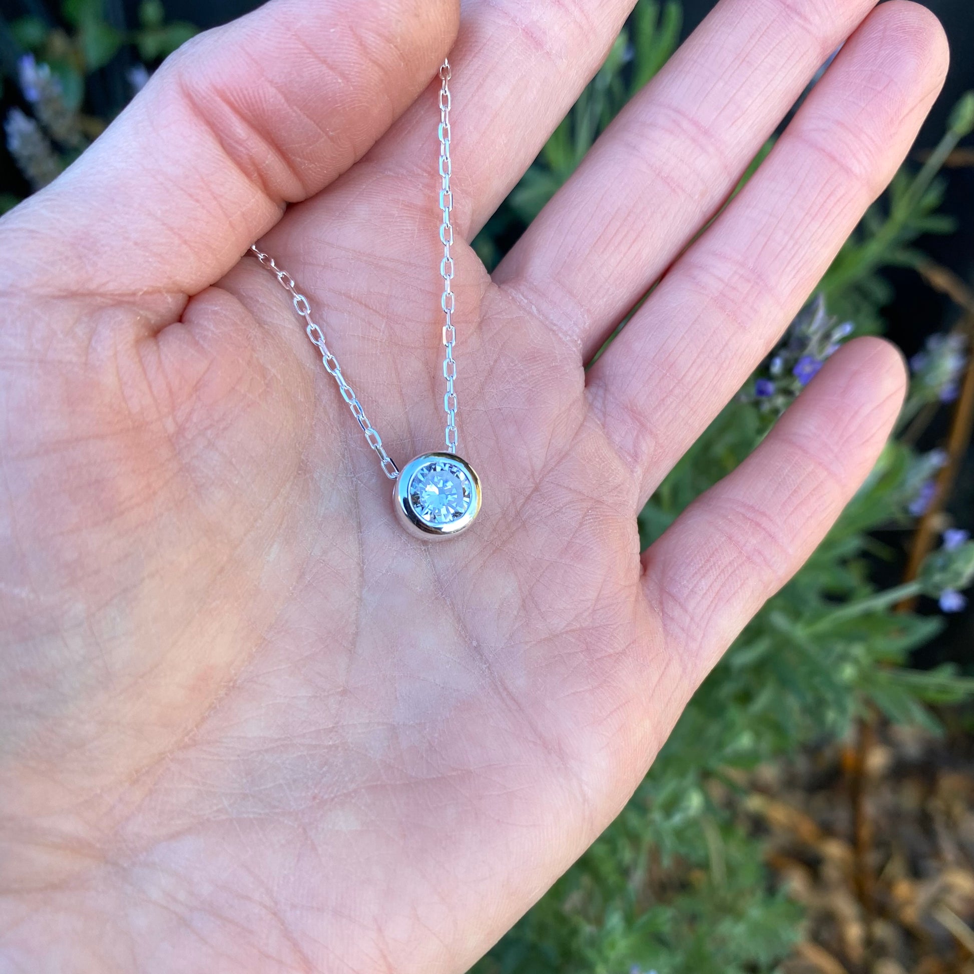 Colgante punto de luz con Cristal Swarovski redondo blanco de 8 mm de diámetro.