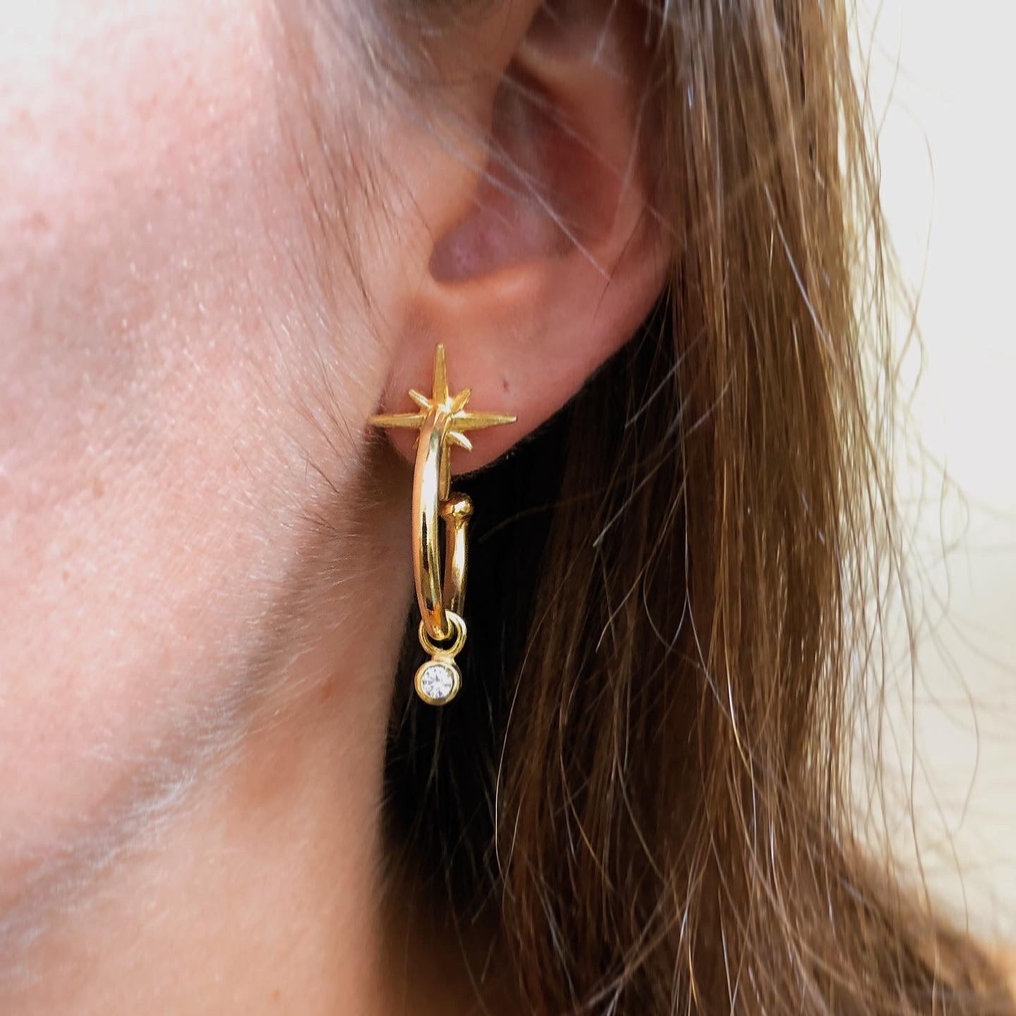 Par de aros con punto de luz, piedra corte brillante de 3 mm. a elección (en las últimas fotos están las piedras disponibles). La pieza del punto de luz es móvil pero tiene un tope, no se sale de la argolla.